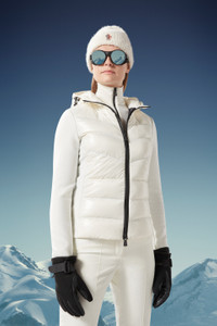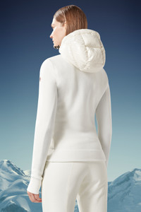 Made to support an active outdoor lifestyle, this Moncler Grenoble hoodie for women can be worn on the slopes in the winter or trekking in the milder season. Designed as a mid-layer, this padded hoodie is best when worn under heavier jackets. Crafted from stretch polar fleece, the zip-up style is enhanced with a down-filled front. The nylon laque front and hood are paired with water resistant zippers, enabling the sweatshirt to double as outerwear in milder weather. DETAILS - Crafted from stretch polar fleece - Nylon laque front and hood - Recycled nylon lining - Down-filled - Hood with drawstring fastening - YKK® AquaGuard® Highly Water Resistant zipper closure SIZE AND FIT - The model is wearing a size S and is 180 cm tall - The model measures: bust 84 cm, waist 61 cm, hips 90 cm - Slim fit COMPOSITION OUTER FRONT: 100% Polyamide / Nylon; FRONT LINING: 100% Polyamide / Nylon; HOOD: 100% Polyamide / Nylon; PADDING: 90% Down, 10% Feather; SLEEVES: 94% Polyester, 6% Elastane / Spandex; BACK: 94% Polyester, 6% Elastane / Spandex Product code J20988G5000080093034 Made in Moldova