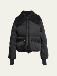 Featuring a detachable cableknit collar with tassel ties, the "Furtschella" bomber jacket is insulated with premium down and boasts an oversized silhouette for a modern look. Features signature embroidered logo patch on the left sleeve Baseball collar Long sleeves with stretch jersey wrist gaiters Angled zip pockets; ski pass pocket Relaxed fit Twoway zipfront Nylon/polyamide/wool/polyester Fill: Down/feather Machine wash cold Imported