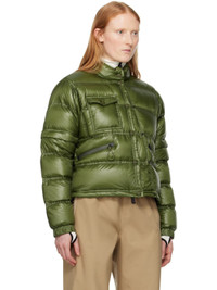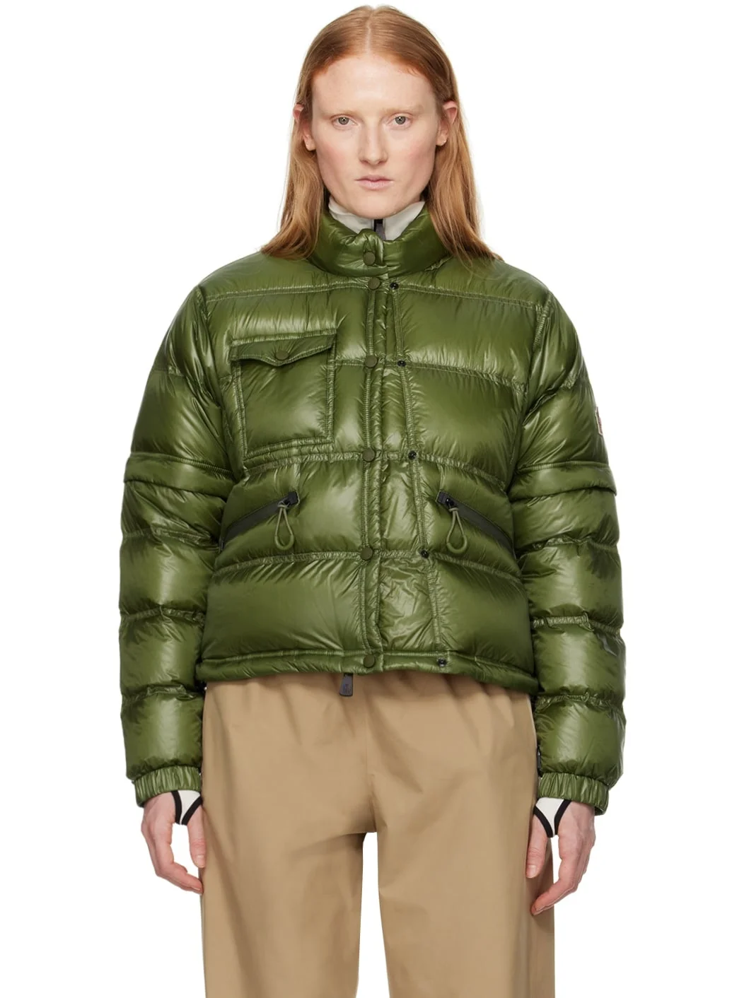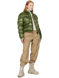 Packable DIST-certified down-filled quilted nylon ripstop jacket. Water-repellent, windproof, and breathable. · Bungee-style drawstring at hood · Stand collar · Two-way zip closure with press-stud placket · Flap pocket and zip pockets · Bungee-style drawstring at hem · Embroidered logo patch at sleeve · Detachable zip panel at sleeves · Elasticized cuffs · Logo patch and text printed at back · Concealed zip pocket at back · Logo-woven patch at interior · Full taffeta lining Part of the Day-Namic collection. Supplier color: Light green Fill 1: 90% down, 10% goose feather.