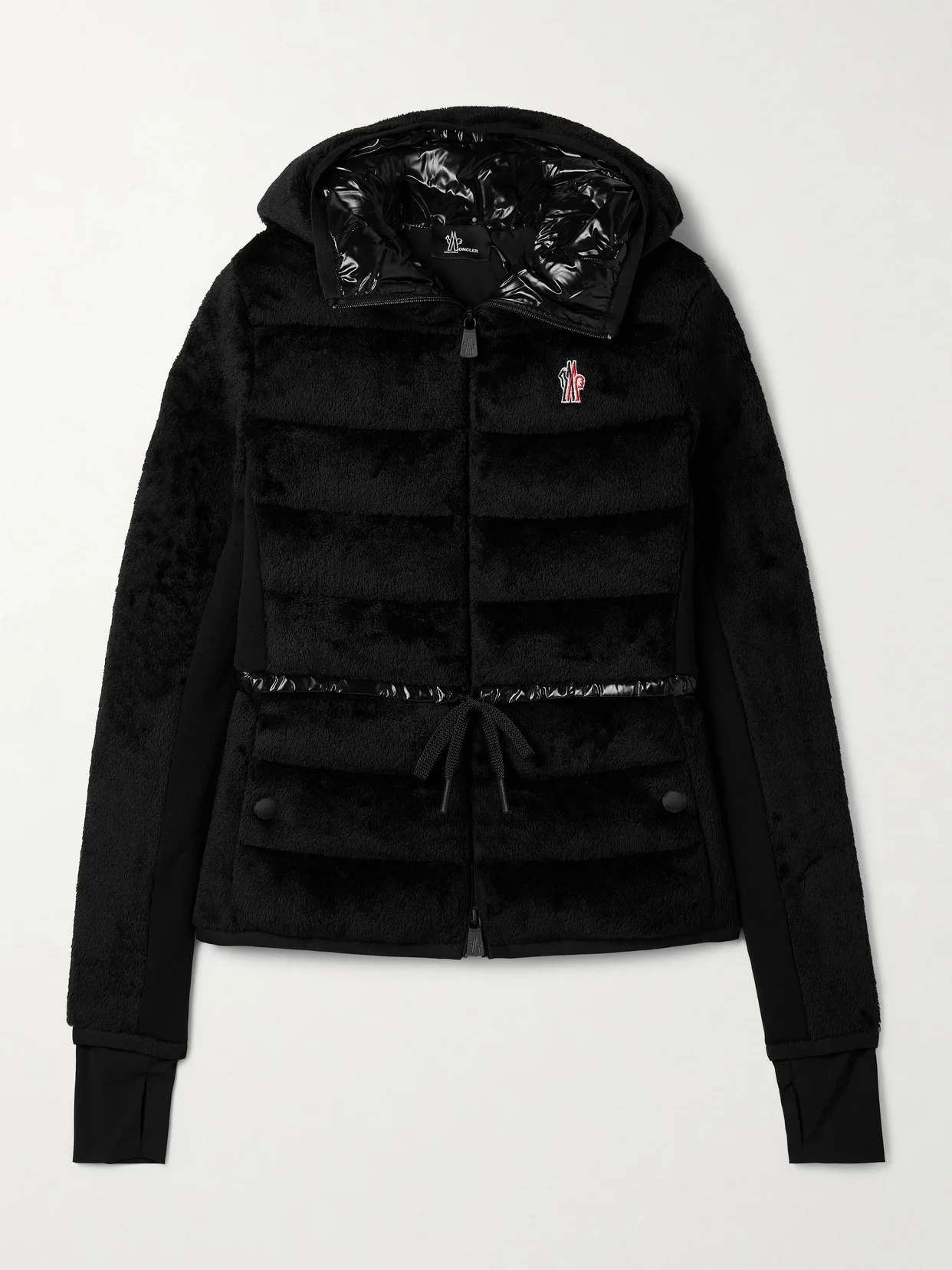 Indulge in the comfort and chic style of Moncler Grenoble's down jacket. It's made from plush fleece that's quilted through the front to keep the insulating down evenly distributed and has a glossy shell trim highlighting the drawstring waist. The generous hood and jersey cuffs add to its practicality.