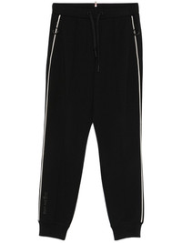 jersey-texture track pants Highlights - Black - Elasticated drawstring waistband - Two side zip-fastening pockets - Ribbed ankles - Raised seam detail Imported Composition Cotton 48%, Modal 47%, Elastane 5% SIZE & FIT Model measurements Height 5 ft 10 in(1.78 m) Bust/Chest 33.46 in(85 cm) Hips 36.22 in(92 cm) Waist 23.22 in(59 cm) FittingInformation Designed for a relaxed tapered cut, these trousers allow for a close fit at the waist and offer a loose fit at the thighs, with a closer fit toward the ankles The elasticated waist allows for a comfortable fit Made from a midweight stretch fabric, this piece offers elasticity and flexibility when worn