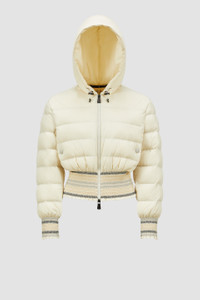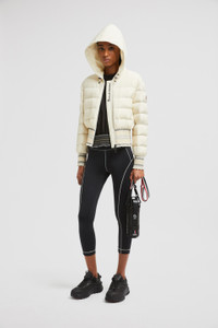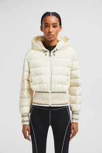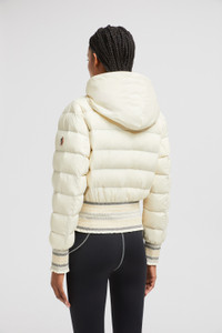 A statement for the trail, the women's Moncler Grenoble Jeypore short down jacket embellishes protective fabrics with textured embroidery. The Jeypore down jacket reimagines the down jacket for outdoor adventures. The short puffer is crafted from an innovative type of nylon that is designed to feel extremely light and comfortable. Creating an adaptable fit, the jacket features smock embroidery at the waist and cuffs. DETAILS - Crafted from recycled stretch nylon - Recycled polyester lining - Down-filled - Adjustable hood - Zipper closure - Pockets with snap button closure - Smock stitch embroidery at the cuffs and hem SIZE AND FIT - Regular fit - Belted COMPOSITION BASE FABRIC: 85% Polyamide / Nylon, 15% Elastane / Spandex; LINING: 100% Polyester; PADDING: 90% Down, 10% Feather; DETAILS PADDING: 100% Polyester; Embroidery: 53% Polyester, 28% Elastodiene, 19% Polyamide / Nylon Product code K10981A00014595FK20G Made in Italy