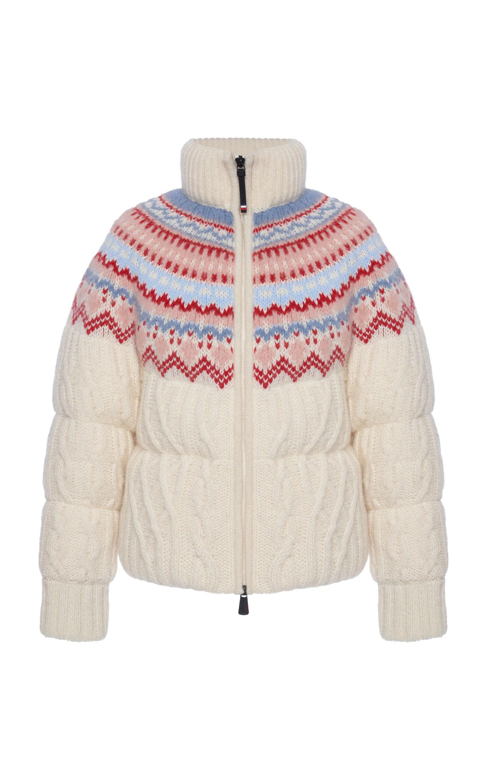 Named for the popular Monestier-de-Clermont ski resort in the French Alps, Moncler Grenoble is a leader in performance skiwear that utilizes its mountaineering expertise to craft designs that fuse fashion and function. This down-insulated puffer is crafted from a cable-knit wool-mohair blend that makes it ultra-soft to the touch. It's relaxed fit and preppy feel makes it an apres-ski favorite. PRODUCT DETAILS - Resort '25 - Zip fastening - Composition: wool-mohair blend with alpaca - Dry clean - Imported SIZE & FIT - Our model is wearing a size Small - Model is 5'9" with a 31" bust, 22" waist, and 35" hip - Designed for a relaxed fit