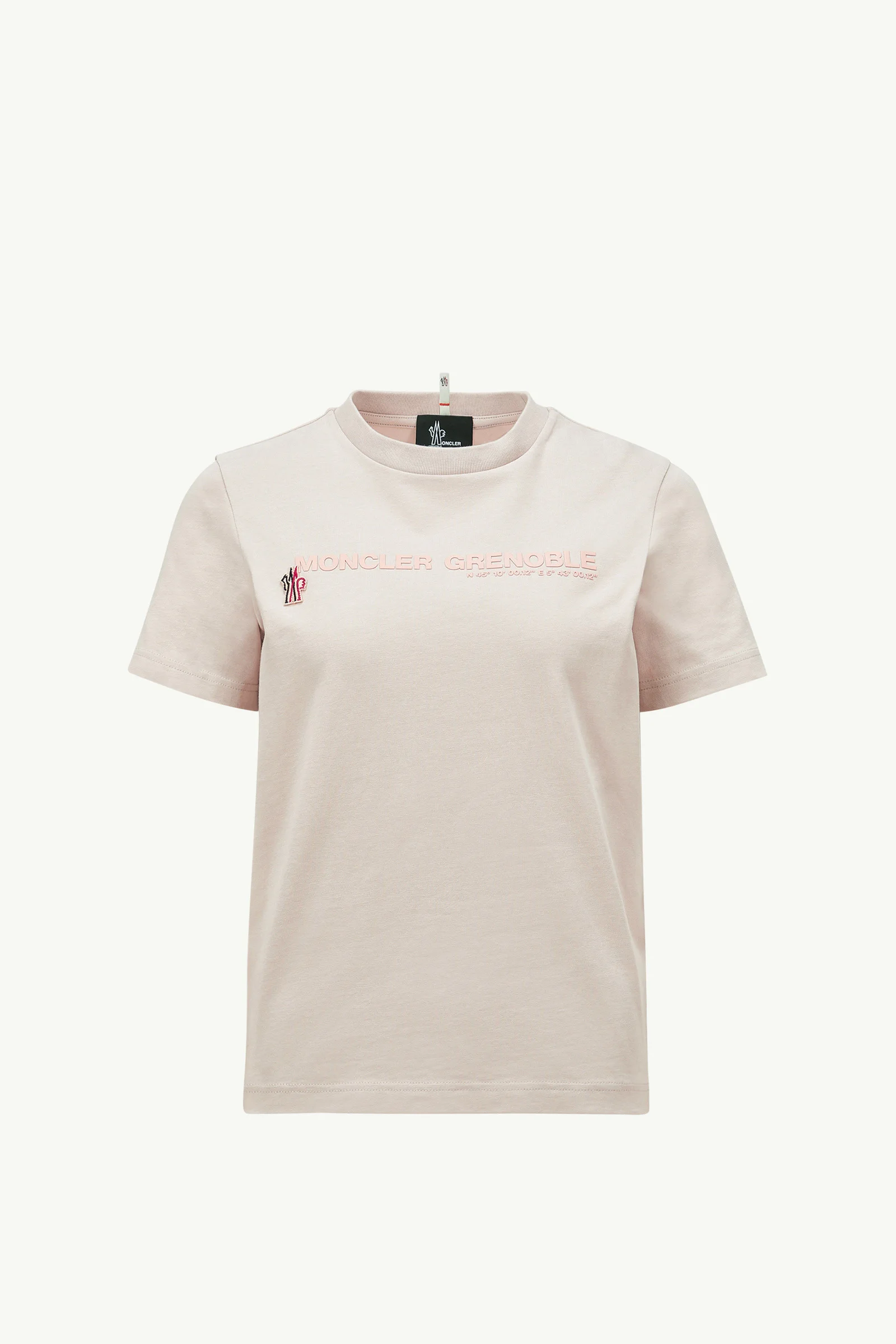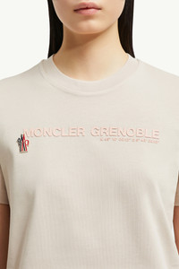 A women's Moncler Grenoble design, this short sleeve t-shirt captures the collection's adventurous spirit with a logo motif. Effortlessly adapting to the city or the mountain, this short sleeve t-shirt is crafted from soft cotton. Drawing from brand heritage, the crew neck is embellished with a subtle logo design that features the coordinates of the city of Grenoble. DETAILS - Crafted from cotton jersey - Crew neck - Short sleeves - Embossed and printed logo motif - Logo patch SIZE AND FIT - The model is wearing a size S and is 177 cm tall - Regular fit COMPOSITION BASE FABRIC: 100% Cotton; Ribs: 100% Cotton Product code K10988C000088392750W Made in Turkey