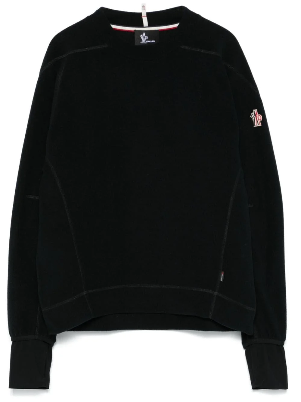 logo-embroidered sweatshirt Highlights - Black - Fleece texture - Crew neck - Seam detailing - Embroidered logo at the sleeve - Logo print to the rear - Straight hem Made in Italy Composition Outer: Polyester 100%, Polyamide 75%, Elastane 25% Lining: Polyamide 100% SIZE & FIT Model measurements Height 5 ft 11 in(1.8 m) Bust/Chest 32.67 in(83 cm) Hips 35.82 in(91 cm) Waist 25.98 in(66 cm) FittingInformation Designed for a relaxed fit, this piece allows for comfort and movement when worn The sleeves are constructed with additional length and built-in thumb loops that allow for movement and a secure fit Made from a midweight stretch fabric, this piece offers elasticity and flexibility when worn
