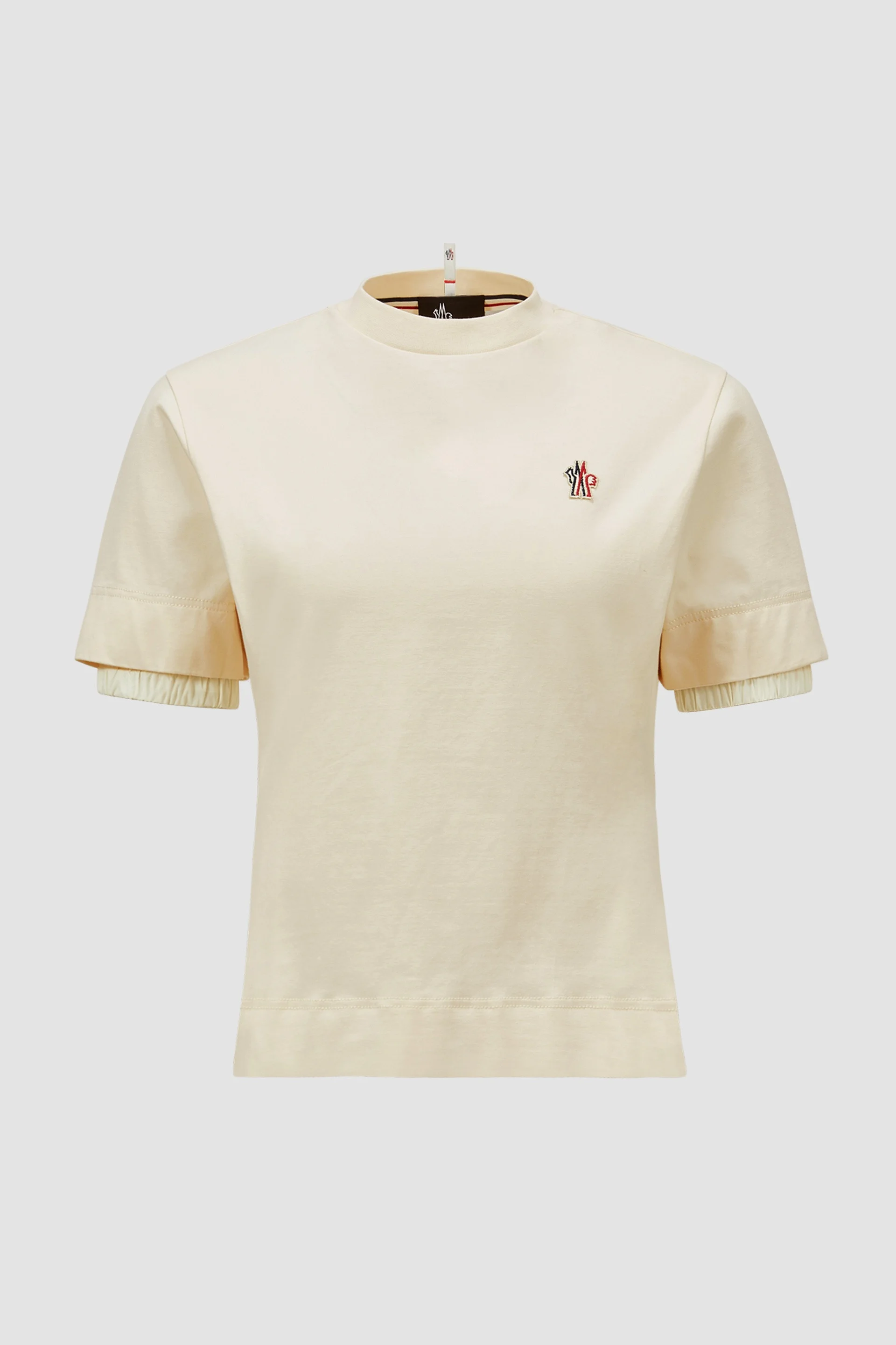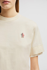 Part of the Moncler Grenoble collection, this cotton t-shirt is a staple in an active women's wardrobe. Designed to support movement, this short sleeve t-shirt is crafted from cotton jersey with a stretch finish. Reflective accents complete the crew neck, making it ideal for physical activities outside. DETAILS - Crafted from stretch cotton jersey - Crew neck - Short sleeves - Elastic cuffs - Reflective triangle detail SIZE AND FIT - The model is wearing a size S and is 180 cm tall - The model measures: bust 77 cm, waist 60 cm, hips 89 cm - Slim fit COMPOSITION BASE FABRIC: 95% Cotton, 5% Elastane / Spandex; Ribs: 95% Cotton, 5% Elastane / Spandex; 1 MATERIAL: 100% Polyamide / Nylon Product code K10988C0000189AW104A Made in Turkey