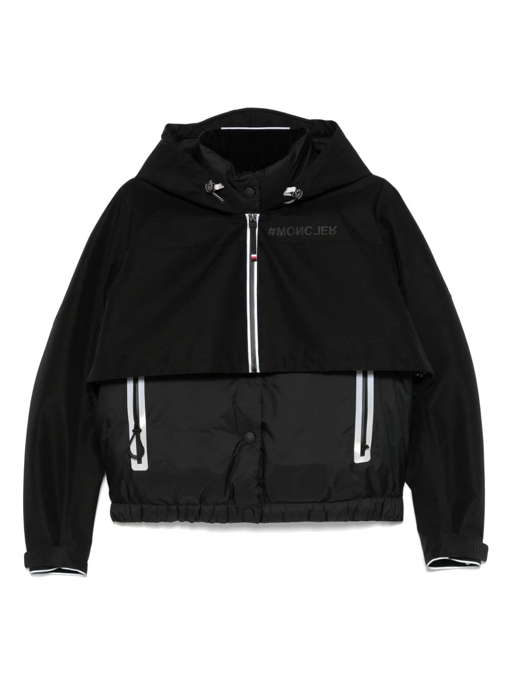 logo-print jacket Highlights - Black - Front press-stud and zip fastening - Drawstring hood - Two zip-fastening pockets - Long sleeves Imported Composition Outer: Polyamide 100% Lining: Polyamide 100%, Polyester 100%, Cotton 98%, Elastane 2% Washing instructions Machine Wash