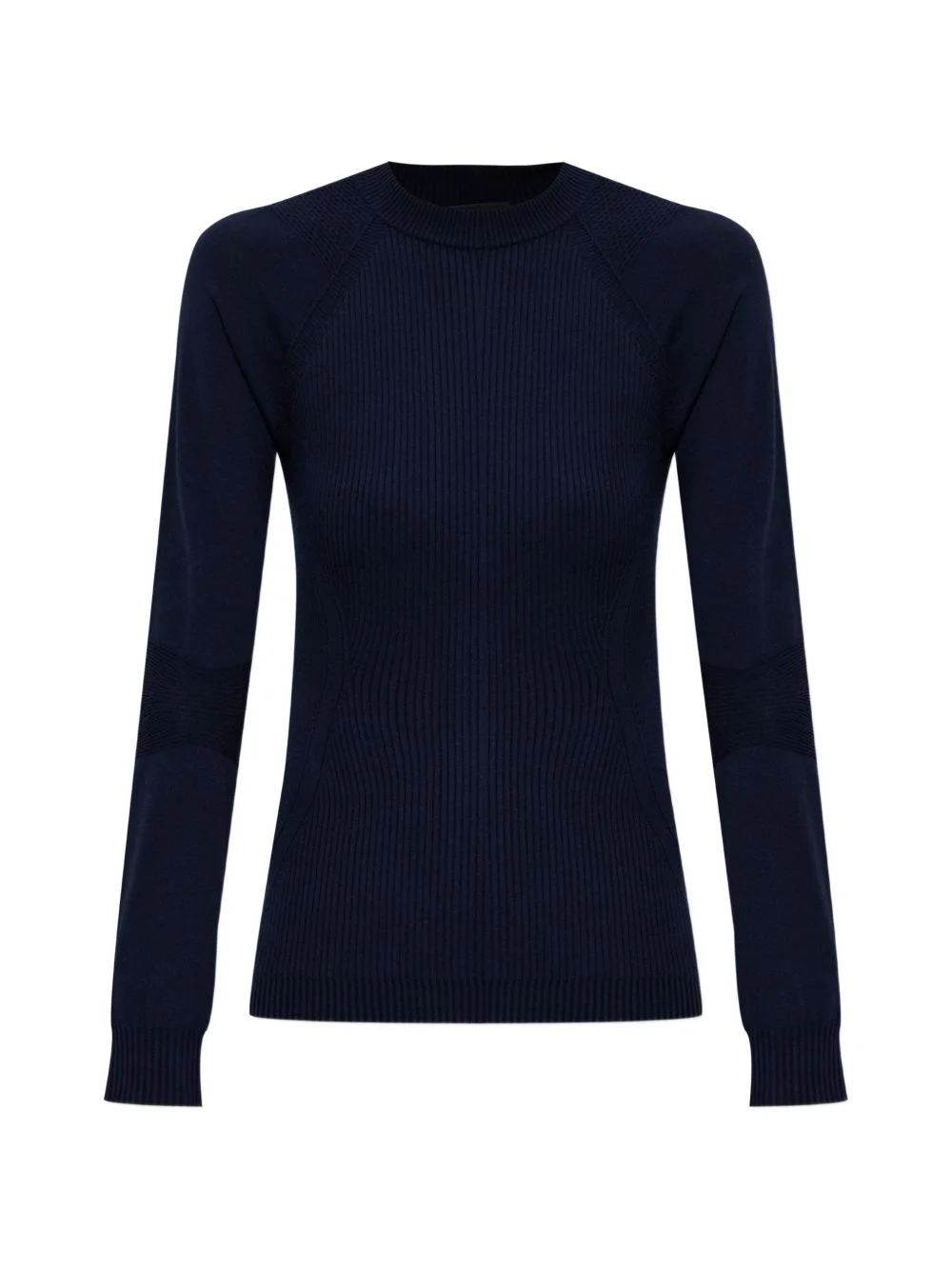 logo ribbed top Highlights - Dark blue - Ribbed knit - Logo applique - Round neck - Long sleeves - Fitted Imported Composition Viscose 67%, Polyester 33% Washing instructions Read Manufacturer Guidelines