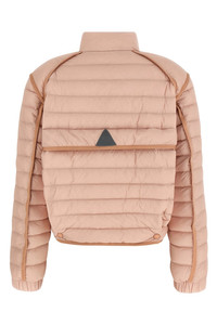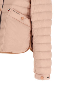 cod. L10981A00016597YD519 Short 'Madulains' water-repellent saison longue down jacket, slightly goose feather padded polyester lining, standing collar with chambray lining, Water Repellent Look zip closure and front snap buttons, pockets, long cuffed sleeves and logo patch applique, rounded hem with snap buttons at the back, foldable. Color: Pink Size & Fit: true to size fit Composition: 100% polyester Made in: Romania PROMO CODE NOT APPLICABLE