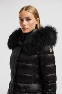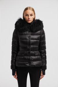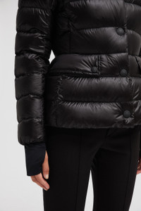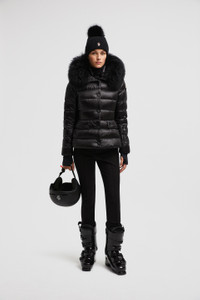 Crafted from technical materials to support performance, the Armoniques short down jacket for women features a detachable shearling trim on the hood. The Armoniques down jacket for women is envisioned for alpine excursions. Being crafted from 2-layer nylon leger technique, the short puffer jacket features an inner membrane that guarantees maximum resistance and breathability. The water-resistant zippers, media pocket, and the wrist gaiters are performance details designed to guarantee maximum protection on the slopes. A detachable shearling trim on the hood adds a final touch to the design. DETAILS - "Crafted from 2L nylon leger technique Nylon leger lining Down-filled Hood with elastic drawstring fastening and detachable lambskin shearling trim YKK® AquaGuard® highly water-resistant zipper and snap button closure Pockets with YKK® AquaGuard® highly water-resistant zipper and snap button closure Inner media pocket with YKK® AquaGuard® highly water-resistant zipper closure Stretch jersey wrist gaiters Ski pass pocket with YKK® AquaGuard® highly water-resistant zipper closure" SIZE AND FIT - The model is wearing a size 1 and is 178 cm tall - The model measures: bust 78 cm, waist 58 cm, hips 89 cm - Slim fit COMPOSITION BASE FABRIC: 100% Polyamide / Nylon; LINING: 100% Polyamide / Nylon; LINING 1: 55% Polyester, 34% Polyamide / Nylon, 11% Elastane / Spandex; PADDING: 90% Down, 10% Feather; DETAILS PADDING: 100% Polyester; 1 MATERIAL: 83% Polyamide / Nylon, 17% Elastane / Spandex;Leather with hair 1: LAMB Product code J20981A0005853071999 Made in Romania