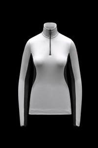 This turtleneck sweater for women is designed to wear as a base layer on your mountain adventures. Made from Polartec® Power Grid™, the turtleneck sweater boasts a slim fit. The cutting-edge material improves breathability and disperses sweat more efficiently for greater comfort. - Crafted from Polartec® Power Grid™ Base Layer - Turtleneck - Contrast color sides and underarms - Zipper closure - Wrist gaiters SIZE AND FIT - The model is wearing a size S and is 180 cm tall - The model measures : chest 77 cm waist 61 cm hips 87 cm - Slim fit COMPOSITION AND CARE BASE FABRIC: 88% Polyester, 12% Elastane / Spandex Wash max 30°C - Mild process; Do not bleach; Do not tumble dry; Do not iron; Do not dry clean; Professional wet cleaning - mild process; Flat dry in the shade; Wash separately; It is advisable to wash with the garment on reverse. Product code H20988G00024809EE041 Made in Italy