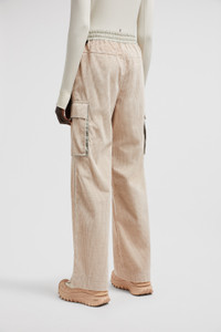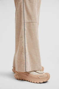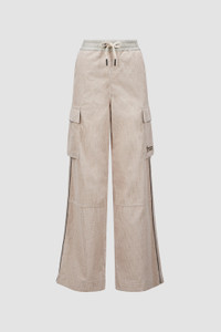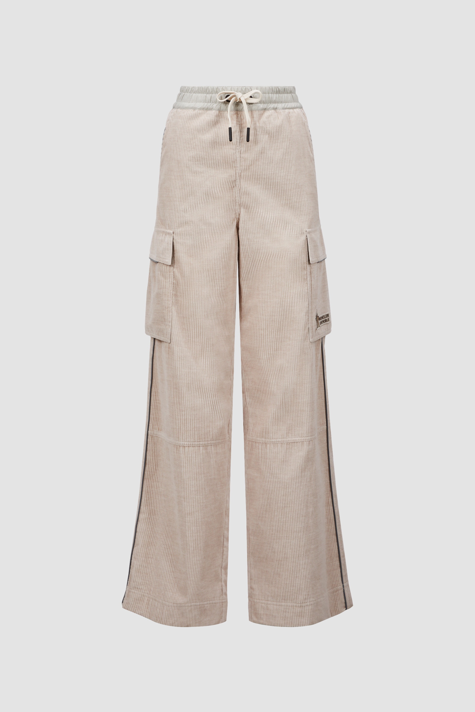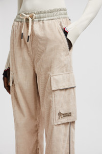 Whether it's time off in the mountains or the city, these jogging pants from the women's Moncler Grenoble collection encompass relaxed luxury. Crafted from stretch corduroy, these jogging pants are fit for a range of occasions. The bottoms feature practical pockets for your essentials and an adjustable waistband in rainwear, a water-repellent nylon fabric. DETAILS - Crafted from stretch corduroy - Rainwear waistband with elastic drawstring fastening - Pockets with hook-and-loop closure - Reflective details - Logo patch SIZE AND FIT - The model is wearing a size S and is 180 cm tall - The model measures: bust 81 cm, waist 58 cm, hips 89 cm COMPOSITION BASE FABRIC: 100% Cotton; DETAILS PADDING: 100% Polyester; 1 MATERIAL: 100% Polyamide / Nylon Product code J20982A00002597MN21P Made in Italy