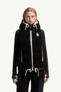 Encapsulating an apres ski mood, this down vest from the women's Moncler Grenoble collection is crafted from teddy fleece. Crafted from plush teddy fleece, this down vest adds a touch of luxury to moments of winter leisure. The warmer is enriched with a trim in nylon laque, a signature Moncler fabric notable for its glossy texture and water-repellent protection. An adjustable hood completes the design. DETAILS - Designed for trekking and hiking - Crafted from teddy fleece - Nylon laque shoulders and trim - Nylon laque lining - Down-filled - Adjustable hood - Zipper closure - Zipped pockets - Hem with elastic drawstring fastening SIZE AND FIT - The model is wearing a size S and is 179 cm tall - Regular fit COMPOSITION BASE FABRIC: 100% Polyester; 1 MATERIAL: 100% Polyamide / Nylon; 2 MATERIAL: 100% Polyamide / Nylon; LINING: 100% Polyamide / Nylon; HOOD LINING: 100% Polyamide / Nylon; PADDING: 90% Down, 10% Feather; DETAILS PADDING: 100% Polyester Product code K20988G00014899A9999 Made in Moldova