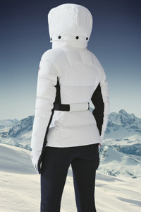 Crafted from technical materials and enhanced with performance details, the Guyane down jacket for women adds a graphic touch to looks for the slopes. Constructed with 2-layer stretch nylon, the Guyane down jacket for women features technical fleece inserts that deliver an extra dose of comfort. The puffer jacket is enhanced with a Windproof collar, water-resistant zippers, a powder skirt and wrist gaiters. DETAILS - Crafted from 2L 4-way plain weave stretch nylon - Stretch nylon lining - Down-filled - Hood with detachable rigid visor - Performance Hardfleece underarms and sides - Windproof large collar - YKK® AquaGuard® highly water-resistant zipper and snap button closure - Outer pockets with YKK® AquaGuard® highly water-resistant zipper closure - Inner media pocket with YKK® AquaGuard® highly water-resistant zipper closure - Inner powder skirt - Stretch jersey wrist gaiters - Ski pass pocket with YKK® AquaGuard® highly water-resistant zipper closure - Cuffs with pull tab adjusters and snap buttons SIZE AND FIT - The model is wearing a size 1 and is 179 cm tall - The model measures: bust 80 cm, waist 60 cm, hips 86 cm - Slim fit COMPOSITION LINING: 85% Polyamide / Nylon, 15% Elastane / Spandex; HOOD LINING: 100% Polyamide / Nylon; SLEEVES LINING: 92% Polyester, 8% Elastane / Spandex; HOOD: 86% Polyamide / Nylon, 14% Elastane / Spandex; PADDING: 90% Down, 10% Feather; DETAILS PADDING: 100% Polyester; 1 MATERIAL: 52% Polyester, 32% Polyamide / Nylon, 16% Elastane / Spandex; 2 MATERIAL: 83% Polyamide / Nylon, 17% Elastane / Spandex; BOTTOM LINING : 100% Polyamide / Nylon; BASE FABRIC: 86% Polyamide / Nylon, 14% Elastane / Spandex Product code J20981A5124053861041 Made in Romania