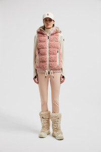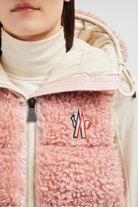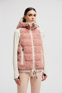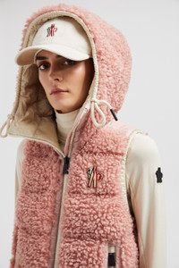 Encapsulating an apres ski mood, this down vest from the women's Moncler Grenoble collection is crafted from teddy fleece. Crafted from plush teddy fleece, this down vest adds a touch of luxury to moments of winter leisure. The warmer is enriched with a trim in nylon laque, a signature Moncler fabric notable for its glossy texture and water-repellent protection. An adjustable hood completes the design. DETAILS - Crafted from teddy fleece - Nylon laque trim - Nylon laque lining - Down-filled - Adjustable hood - Zipper closure - Zipped pockets - Hem with elastic drawstring fastening SIZE AND FIT - The model is wearing a size S and is 180 cm tall - The model measures: bust 81 cm, waist 62 cm, hips 88 cm - Regular fit COMPOSITION BASE FABRIC: 100% Polyester; 1 MATERIAL: 100% Polyamide / Nylon; LINING: 100% Polyamide / Nylon; HOOD LINING: 100% Polyamide / Nylon; PADDING: 90% Down, 10% Feather; DETAILS PADDING: 100% Polyester Product code J20988G00022899A9U3A Made in Moldova