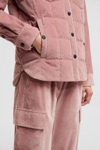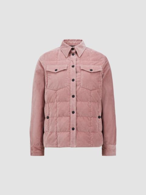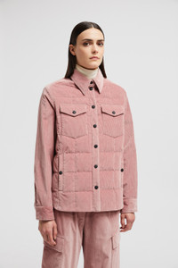 Whether it's time off in the city or the mountains, the Paulet down shirt jacket from the women's Moncler Grenoble collection encompasses relaxed luxury. Crafted from corduroy, the Paulet down shirt jacket is a contemporary take on casual winter outerwear. The shacket's straight cut features a host of overshirt-inspired details, including a classic pointed collar, chest pockets and a snap button front. DETAILS - Crafted from stretch corduroy - Nylon laque lining - Down-filled - Snap button closure - Pockets with snap button closure - Adjustable cuffs SIZE AND FIT - The model is wearing a size 1 and is 180 cm tall - The model measures: bust 81 cm, waist 62 cm, hips 88 cm - Regular fit COMPOSITION BASE FABRIC: 98% Cotton, 2% Elastane / Spandex; LINING: 100% Polyamide / Nylon; PADDING: 90% Down, 10% Feather; DETAILS PADDING: 100% Polyester Product code J20981G00002595EO51A Made in Romania