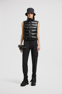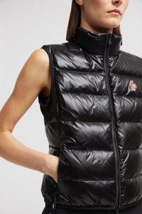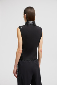 Providing warmth while exploring the great outdoors, this padded vest is part of the women's Moncler Grenoble collection. Part of a multi-functional wardrobe, this zip-up vest is crafted from technical nylon jersey. The piece is enhanced with a down-filled front, allowing it to double as outerwear in milder weather. DETAILS - Crafted from technical nylon jersey - Down-filled micro ripstop nylon front - Zipper closure - Zipped pockets - Printed logo SIZE AND FIT - The model is wearing a size S and is 180 cm tall - The model measures: bust 81 cm, waist 62 cm, hips 88 cm - Regular fit COMPOSITION BASE FABRIC: 82% Polyamide / Nylon, 18% Elastane / Spandex; 1 MATERIAL: 100% Polyamide / Nylon; FRONT LINING: 100% Polyester; PADDING: 90% Down, 10% Feather; DETAILS PADDING: 100% Polyester Product code K10988G00004829H7999 Made in Romania