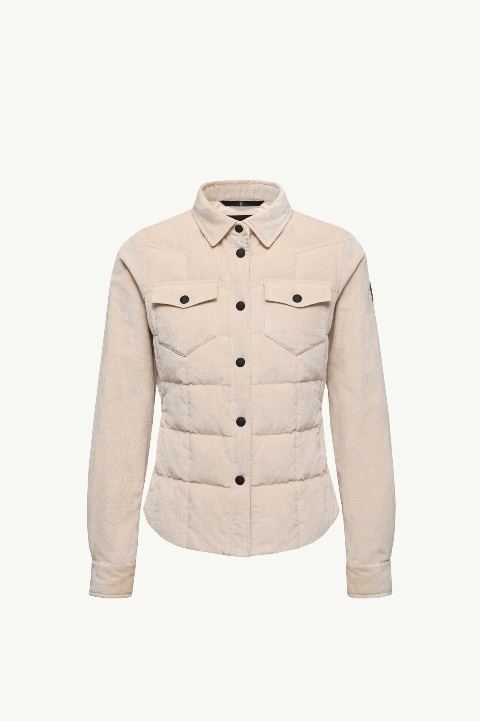Fit for both apres ski and between-seasons casual looks, the Nangy corduroy shacket for women encompasses relaxed luxury. Crafted from corduroy, the Nangy down-filled shacket is a contemporary take on the casual winter outerwear. The shirt jacket's slimline, feminine cut features a host of overshirt-inspired details, including a classic pointed collar, chest pockets and a snap button front. An integrated RECCO® reflector makes you searchable to organized rescue teams worldwide in the event of an avalanche or if lost in the outdoors. DETAILS - Crafted from stretch corduroy - Stretch nylon lining - Down-filled - Snap button closure - Side zipped pockets - Upper flap pockets - Internal media pocket - Internal powder skirt - Skipass pocket - Recco® reflector SIZE AND FIT - The model is wearing a size 1 and is 178 cm tall - Slim fit COMPOSITION BASE FABRIC: 65% Cotton, 35% Modal; LINING: 85% Polyamide / Nylon, 15% Elastane / Spandex; PADDING: 90% Down, 10% Feather; DETAILS PADDING: 100% Polyester Product code K20981G00006598US21I Made in Romania