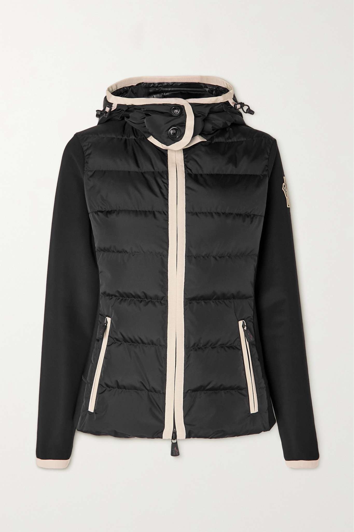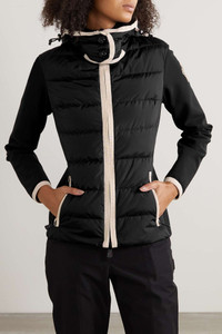 EDITORS'NOTES Ideal for transitional weather or a base layer on the slopes, Moncler Grenoble's jacket is made from twill with a quilted stretch-shell front that's packed with insulating down. It's outlined with contrasting grosgrain trims and has plenty of practical details, like adjustable drawcords at the funnel neck that lock in heat and zipped pockets that secure your phone or ski pass. SIZE & FIT - Size 0 = XS, 1 = S, 2 = M, 3 = L, 4 = XL, 5 = XXL - Fits true to size, take your normal size - Cut for a slim fit - Internal cuffs with thumbholes - Internal waist gaiter - Quilted, slightly stretchy fabric - Model is 177cm/ 5'10" and is wearing the designer's size 1 DETAILS & CARE - Black twill and stretch-shell, cream grosgrain - Two-way zip fastening through front - 86% polyamide, 14% elastane; trim: 83% polyamide, 17% elastane; filling: 90% down, 10% feathers (Goose); lining: 95% polyamide, 5% elastane - Machine wash