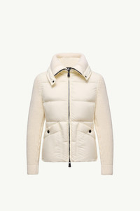 Designed with winter leisure in mind, this padded Moncler Grenoble zip-up cardigan for women features a warm down-filled front. Encapsulating the essence of relaxing in the mountains, this cardigan is crafted from wool. The heavy knit is enhanced by a down-filled front in rainwear, a compact nylon fabric. DETAILS - Crafted from wool - Polyester lining - Down-filled rainwear front - Rib knit - Gauge 3 - Zipper closure - Patch pockets with snap button closure SIZE AND FIT - The model is wearing a size S and is 177 cm tall - Regular fit COMPOSITION OUTER FRONT: 100% Polyamide / Nylon; BASE FABRIC: 100% Virgin wool; YOKE LINING: 100% Polyester; FRONT LINING: 100% Polyester; COLLAR: 100% Polyamide / Nylon; YOKE: 100% Polyamide / Nylon; PADDING: 90% Down, 10% Feather; DETAILS PADDING: 100% Polyester Product code K20989B00003M1282034 Made in Moldova