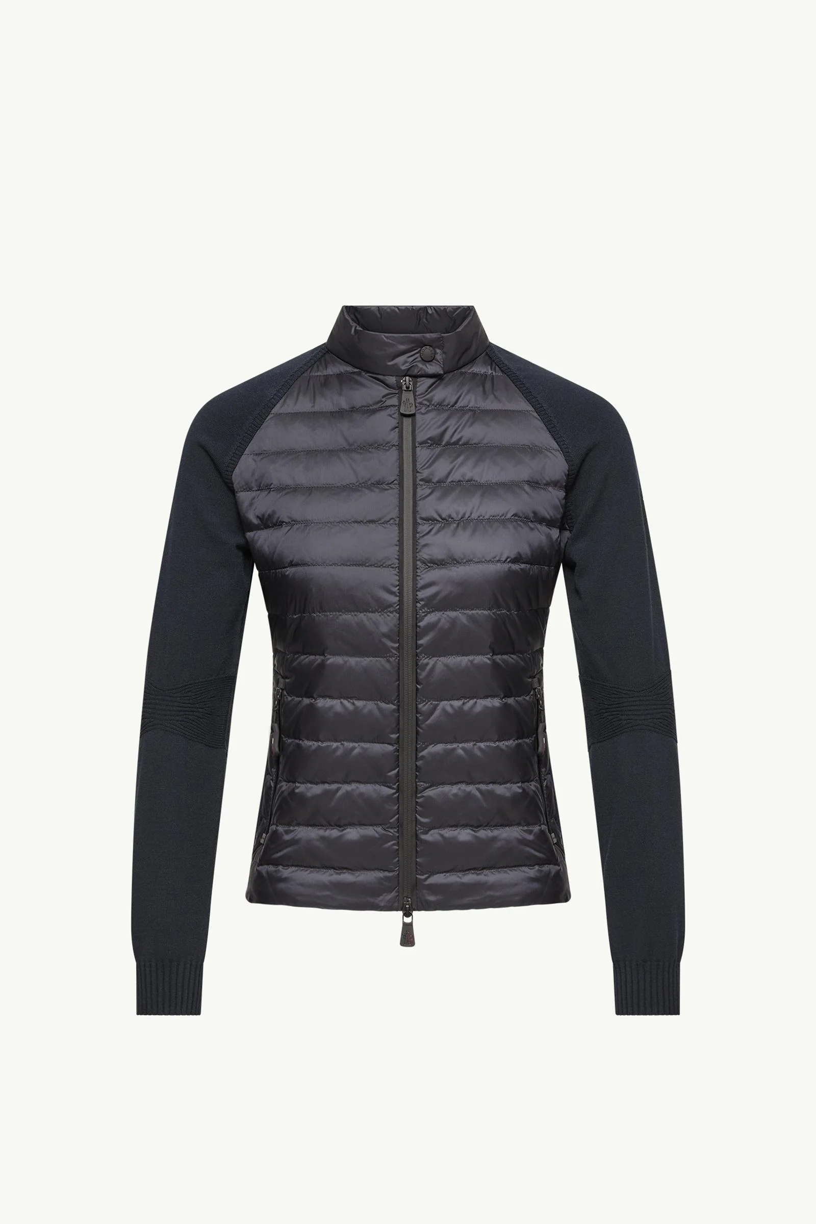 Designed for the great outdoors, this Moncler Grenoble cardigan for women is enhanced with a padded front. Easily doubling as outerwear in balmier weather, this cardigan boasts a down-filled front. The zip-up design features a soft, stretch finish, supporting movement during physical activities. DETAILS - Crafted from viscose blend stretch crepe - Polyester lining - Down-filled longue-saison front - Stockinette and Linz stitch - Gauge 15 - Zipper closure with inner storm flap - Zipped pockets - Jacquard logo SIZE AND FIT - The model is wearing a size S and is 180 cm tall COMPOSITION OUTER FRONT: 100% Polyamide / Nylon; BASE FABRIC: 67% Viscose / Rayon, 33% Polyester; FRONT LINING: 100% Polyester; COLLAR: 100% Polyamide / Nylon; PADDING: 90% Down, 10% Feather; DETAILS PADDING: 100% Polyester Product code L10989B00001M1183742 Made in Moldova