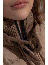 panelled cardigan Highlights - Taupe - Front button and zip fastening - Quilted panels - High neck - Long sleeves Made in Italy Composition Lining: Nylon 100%, Down 100% Outer: Merino 100% Washing instructions Read Manufacturer Guidelines