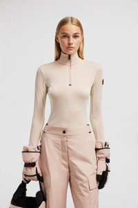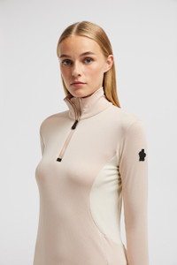 A base layer worn during skiing, this turtleneck is part of the Moncler Grenoble collection for women. Designed for alpine skiing, this turtleneck is crafted from recycled stretch jersey. Zipper closure finishes the style. DETAILS - Crafted from recycled stretch jersey - Zipper closure - Silicone logo SIZE AND FIT - The model is wearing a size S and is 178 cm tall - The model measures: bust 78 cm, waist 58 cm, hips 89 cm - Slim fit COMPOSITION 1 MATERIAL: 88% Polyester, 12% Elastane / Spandex; BASE FABRIC: 88% Polyester, 12% Elastane / Spandex Product code J20988G00016899JO529 Made in Portugal