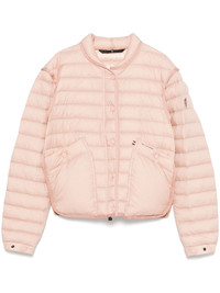 quilted puffer jacket Highlights - Blush pink - Front press-stud and zip fastening - Windproof - Water-repellent - Two front flap pockets Imported Composition Lining: Polyester 100%, Goose Down 90%, Goose Feather 10% Outer: Polyamide 100% SIZE & FIT Model measurements Height 5 ft 10 in(1.78 m) Bust/Chest 33.85 in(86 cm) Hips 36.61 in(93 cm) Waist 26.77 in(68 cm) FittingInformation Designed for a slim fit that sits just away from the body offering a close yet comfortable fit Made from a padded non-stretch fabric, giving it no natural elasticity Washing instructions Machine Wash