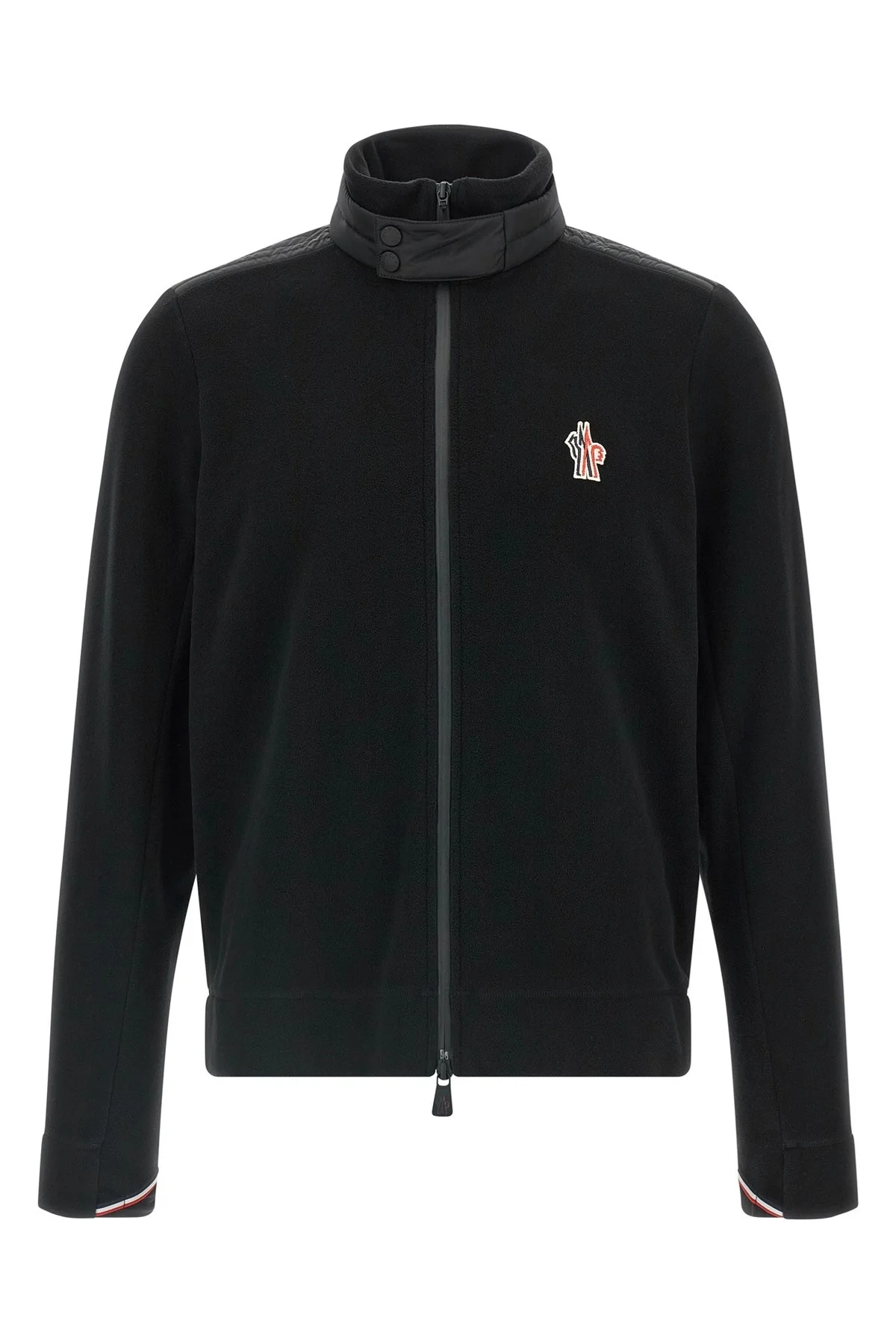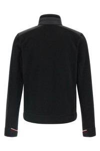 cod. K20978G0002480093999 Fleece-effect stretch jersey sweatshirt, rainwear insert on shoulders and collar with goose down padding, nylon lining, double layer high neck, logo patch and front zip closure, pockets, long cuffed sleeves. Color: Black Size & Fit: Slim fit Composition: 100% polyamide Made in: Italy