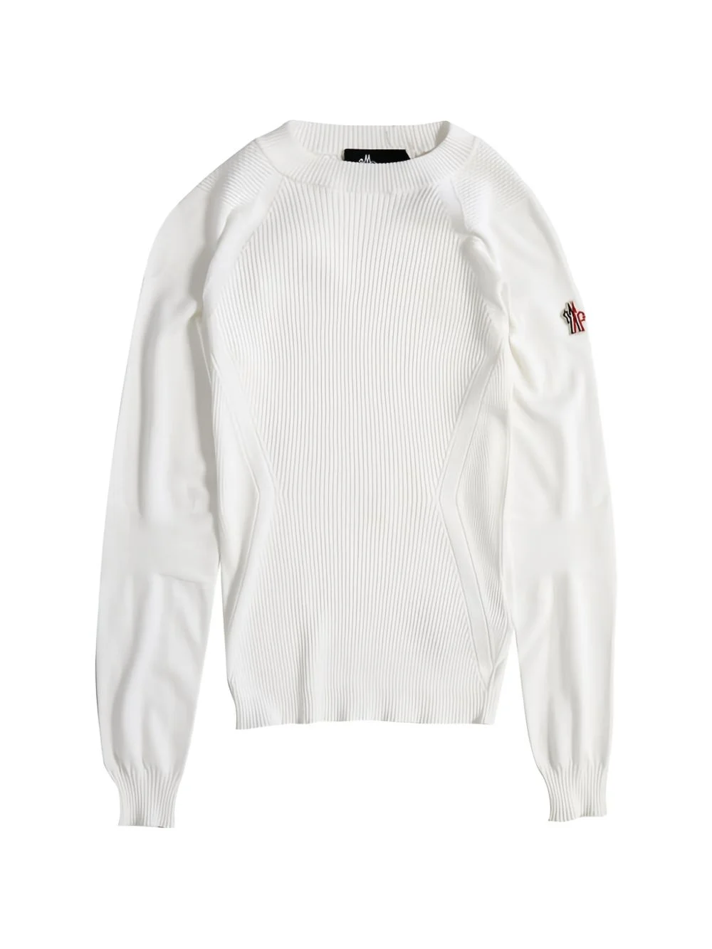 ribbed sweater Highlights - Cream - Ribbed knit - Logo patch on the sleeve - Crew neck - Long sleeves Imported Composition Viscose 67%, Polyester 33% Washing instructions Dry Clean Only