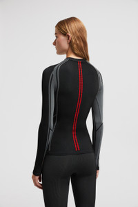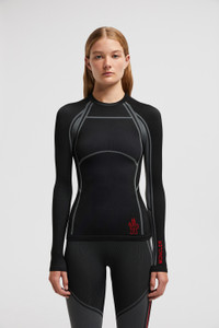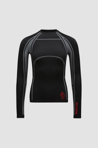 Fusing style with technical performance, this Moncler Grenoble long sleeve t-shirt for women is a versatile base layer for the slopes. Crafted from nylon jersey, this slim-fit t-shirt can be worn underneath heavier pieces to provide extra warmth during skiing. The long sleeve crew neck boasts a seamless design that delivers comfort and support during physical activities. Creating a matching set, the style can be paired with coordinating leggings. DETAILS - Designed for skiing - Crafted from seamless jersey - Ribbed crew neck - Long sleeves - Jacquard logo details SIZE AND FIT - The model is wearing a size S and is 180 cm tall - The model measures: bust 82 cm, waist 60 cm, hips 90 cm - Slim fit COMPOSITION BASE FABRIC: 92% Polyamide / Nylon, 8% Elastane / Spandex Product code J20988D00002M3741999 Made in Italy