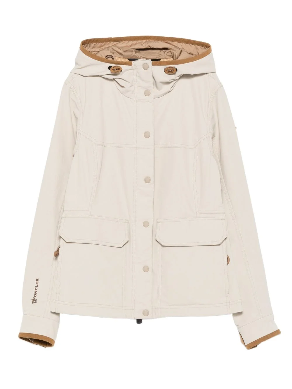 Timah Jacket Highlights - Beige - Brown hood lining - Button front fastening - Welt pockets - Long sleeves - Brown sleeve lining Made in Italy Composition Outer: Polyamide 87%, Spandex/Elastane 13% Lining: Polyamide 100% SIZE & FIT Model measurements Height 5 ft 10 in(1.78 m) Bust/Chest 31.49 in(80 cm) Hips 37 in(94 cm) Waist 23.62 in(60 cm) Washing instructions Read Manufacturer Guidelines