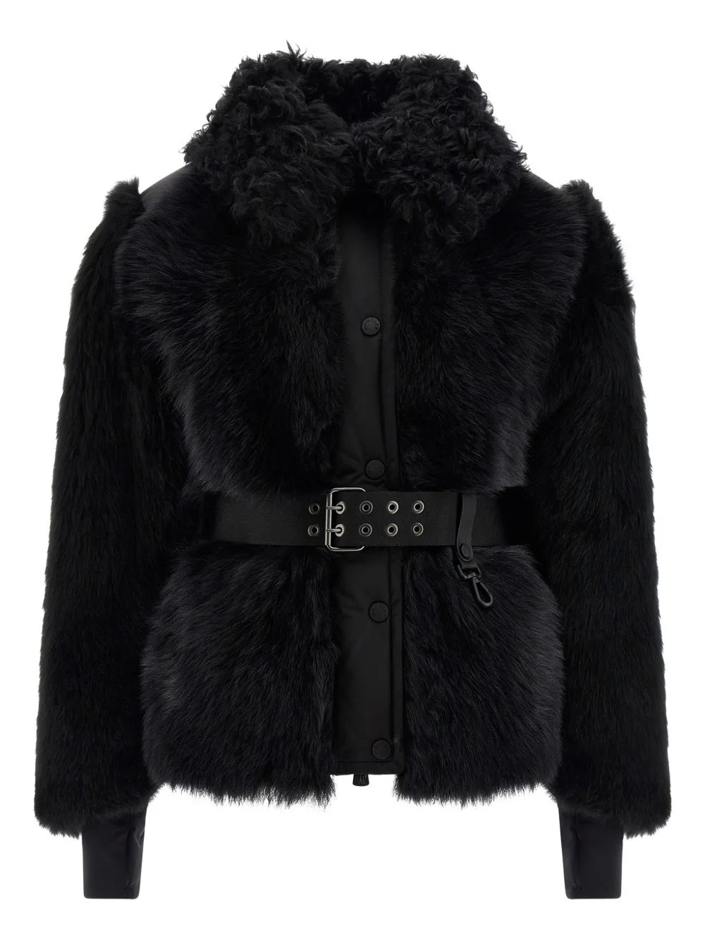 Valdivian shearling belted-waist faux-fur jacket Highlights - Black - Faux-fur - Removable belt - Windproof gaiter sleeves - Logo patch applique - Snap button closure Made in Italy Composition Outer: Polyester 100% Lining: Polyamide 100%, Down 90%, Feather 10% Washing instructions Read Manufacturer Guidelines