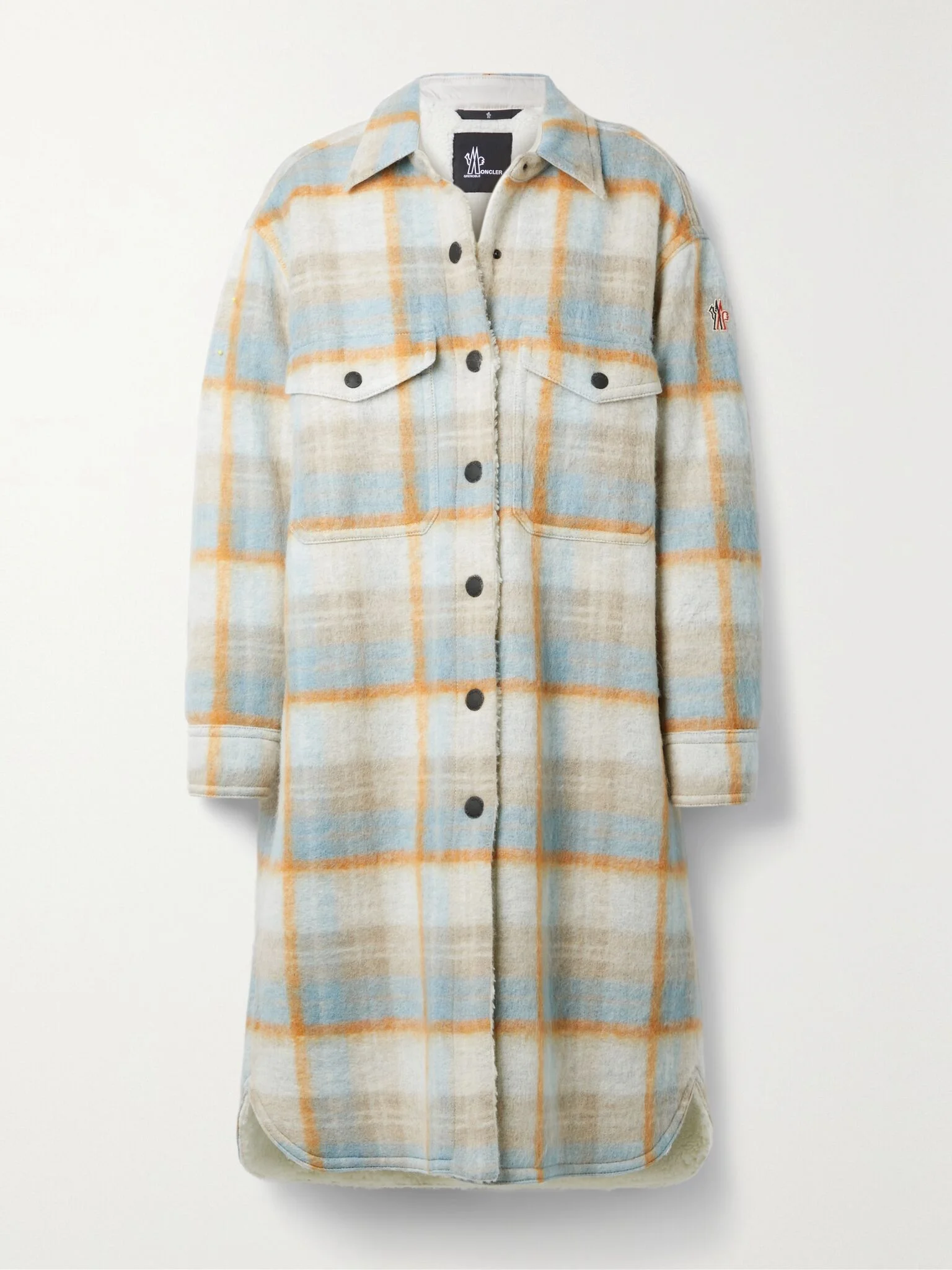 Moncler Grenoble's 'Vanay' runway coat is a cold-weather must-have. The longline silhouette is cut from brushed wool-blend felt with a soft fleece lining. Layer yours over chunky knitwear or thermal tops alike. Details & Care - Multicolored brushed wool-blend felt - Snap fastenings through front - 66% wool, 33% polyester, 1% acrylic; lining1: 100% polyester; lining2: 100% polyamide - Dry clean