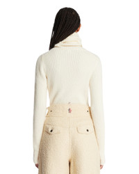 Moncler Grenoble White Ribbed Wool Sweater. White wool blend, ribbed knit, high neckline, long sleeves, straight hem, logo patch on the left sleeve, regular fit. Faelly is 178 cm and she is wearing size S. DETAILS Model: 9F00002M2373010 Composition: 66% Wool, 14% Polyamide Made in: ITALY Season: FW25-26