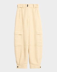 Crafted from wool boucle, these trousers from the Moncler Grenoble Collection feature a cargoinspired silhouette with ample pockets for all your needs. Signature embroidered logo patch on the back waistband Ultrahigh rise Side zip pockets; back flap pockets; cargo pockets Loose fit Full length; adjustable snap cuffs Twosnap; zip fly; belt loops Nylon/polyamide/virgin wool Dry clean Made in Italy
