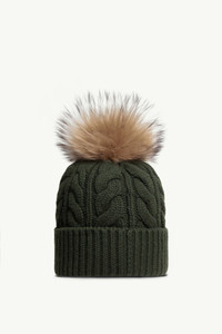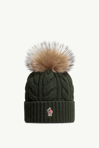 Elevating a winter wardrobe, this women's Moncler Grenoble wool and cashmere beanie features a long haired sheep skin pom pom. A practical yet luxurious accessory for apres ski fun or cold weather in the city, this beanie is crafted from wool and cashmere. The heavy knit accessory is completed by a pom pom made from the softest long haired sheep skin. DETAILS - Crafted from a wool and cashmere blend - Cable knit and fisherman's rib knit fold - Gauge 3 - Long-haired sheepskin pom-pom - Logo patch COMPOSITION BASE FABRIC: 70% Virgin wool, 30% Cashmere;Leather with hair 1: LAMB; Origin: China; Dyed Product code K20983B00011A0069877 Made in Italy