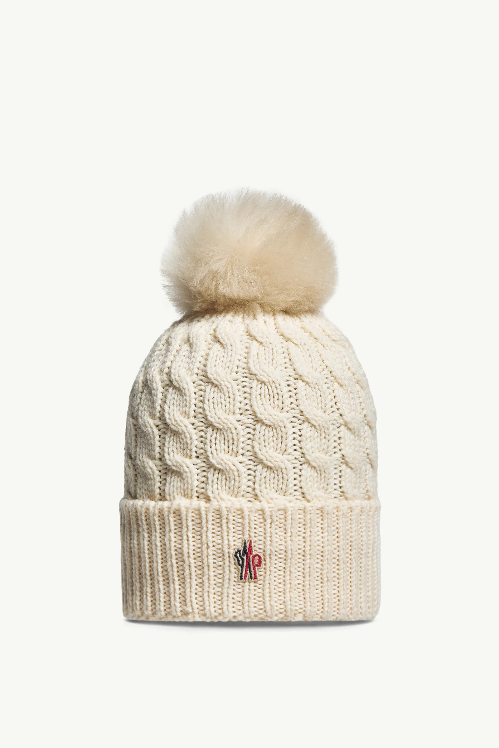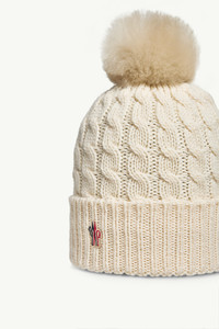 Designed to keep you warm at the summit or in the city, this wool beanie boasts a long haired sheep skin pom pom. A perfect finishing touch to a winter wardrobe, this beanie is crafted from wool with a cable knit finish. The heavy knit accessory is completed by a soft pom pom in long haired sheep skin. DETAILS - Crafted from wool cordonnet - Cable knit - Gauge 3 - Long-haired sheepskin pom-pom - Logo patch COMPOSITION BASE FABRIC: 100% Virgin wool;Leather with hair 1: LAMB; Origin: China; Dyed Product code K20983B000120402A034 Made in Italy