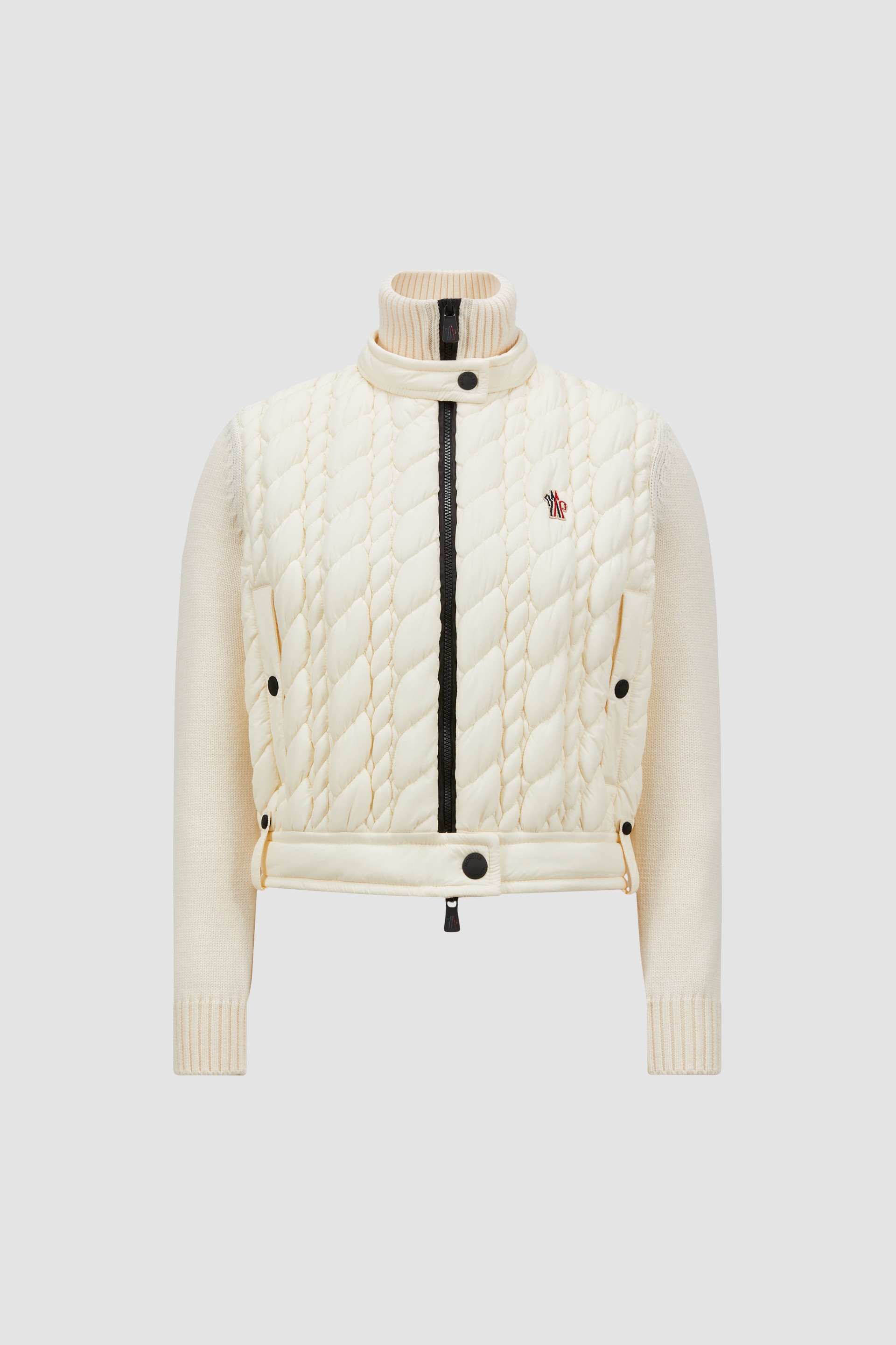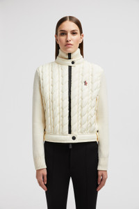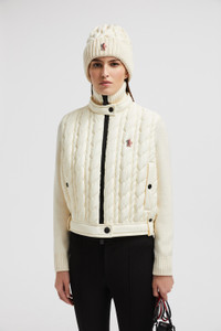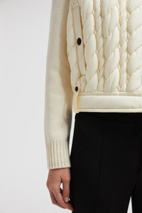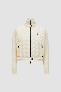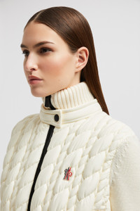 A sophisticated piece for apres ski or winter in the city, this wool cardigan for women is crafted enriched with a padded front. Whether layering for added warmth or wearing on its own, this wool cardigan encapsulates mountain leisure. The turtleneck features a padded front in longue saison - a nylon fabric that keeps out the cold without feeling heavy. - Crafted from ultra-fine wool and longue saison - Stockinette stitch - Gauge 5 - Nylon lining - Padded collar, front and lower back - Ribbed knit turtleneck - Zipper closure - Windproof pockets with button closure - Embroidered logo SIZE AND FIT - Regular fit COMPOSITION AND CARE OUTER FRONT: 100% Polyamide / Nylon; BASE FABRIC: 100% Virgin wool; FRONT LINING: 100% Polyester; BODY PADDING: 100% Polyester; 1 MATERIAL: 100% Polyamide / Nylon Hand wash; Do not bleach; Do not tumble dry; Ironing maximum temperature 110°C - without steam; Do not dry clean; Do not professionally wet clean; Flat dry in the shade; Wash separately; do not soak; It is advisable to wash and iron the garment on reverse.; Do not twist or wring; PROTECT TRIMS WHILE WASHING Product code J20989B00007M1131034 Made in Moldova