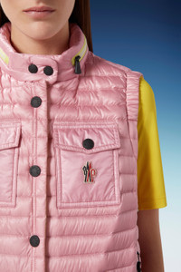 Designed to support an active lifestyle, the women's Gumiane down vest is a versatile warmer. Worn in the city or in the great outdoors, the Gumiane down vest provides warmth for the mid-season. Crafted from recycled fabrics, the puffer vest is enhanced with a pull-out hood and reflective details that make you visible in all conditions. The versatile vest is part of the Moncler Grenoble Day-namic collection. - Crafted from recycled micro ripstop - Recycled nylon lining - Down-filled - Pull-out hood with recycled micro ripstop lining - Two-way zipper closure concealed by a front flap with snap button closure - Upper pockets with snap button closure - Lower pockets with zipper closure - Internal elastic armholes and hem - Recycled patch - Reflective detailing SIZE AND FIT - The model is wearing a size 1 and is 179 cm tall - The model measures: bust 76 cm, waist 60 cm, hips 89 cm - Regular fit COMPOSITION AND CARE LINING: 100% Polyamide / Nylon; PADDING: 90% Down, 10% Feather; DETAILS PADDING: 100% Polyester; BASE FABRIC: 100% Polyamide / Nylon Wash max 30°C - Mild process; Do not bleach; Do not tumble dry; Ironing maximum temperature 110°C - without steam; Do not dry clean; Professional wet cleaning - mild process; Flat dry in the shade; Wash separately; Do not iron decorations; Iron with a cloth between; do not soak; It is advisable to wash and iron the garment on reverse. Product code I10981A00010595B1528 Made in Romania