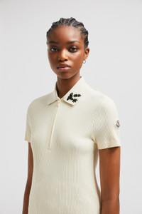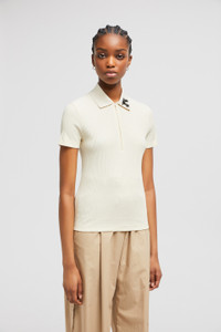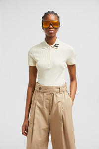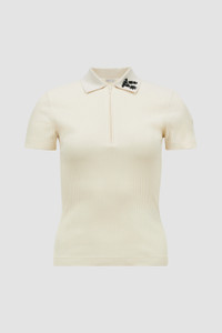 A precious take on a wardrobe staple, this polo shirt for women is adorned with a hand-embroidered flower. Imbuing a daily essential with a delicate feminine feel, this cotton polo shirt features a beaded flower. The hand-embroidered top comes in a sophisticated slim fit. DETAILS - Crafted from ribbed cotton - Knit collar - Short sleeves - Zipper closure - Hand-embroidered beaded floral detail SIZE AND FIT - The model is wearing a size XS and is 178 cm tall - Slim fit COMPOSITION BASE FABRIC: 54% Cotton, 46% Viscose / Rayon; Ribs: 93% Cotton, 6% Polyamide / Nylon, 1% Elastane / Spandex Product code K10938A0000589AYS050 Made in Italy
