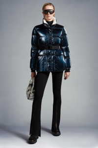 Referencing a playfully nostalgic mountain mood, the Herault short down jacket is a standout piece from the women's collection. Inspired by ‘70s alpine wear, the Herault down jacket is crafted from coated nylon, a fabric obtained from a light yarn bonded with a colored lamina that grants unique shine and depth. The short puffer presents tactical quilting and a belt, designed to enhance the silhouette. The jacket is finished with a terrycloth iteration of the iconic Moncler logo patch. - Crafted from coated nylon - Recycled longue saison lining - Down-filled - Hood - Branded knit band - Zipper closure - Front flap with snap button closure - Pockets with snap button closure - Belted SIZE AND FIT - The model is wearing a size 0 and is 178 cm tall - The model measures: bust 87 cm, waist 59 cm, hips 89 cm - Loose fit - Belted COMPOSITION AND CARE EXTERIOR: 100% Polyamide / Nylon; LINING: 100% Polyamide / Nylon; HOOD: 100% Polyamide / Nylon; PADDING: 90% Down, 10% Feather Hand wash; Do not bleach; Do not tumble dry; Ironing maximum temperature 110°C - without steam; Do not dry clean; Do not professionally wet clean; Flat dry in the shade; Wash separately; Do not twist or wring; Iron with a cloth between; do not soak; It is advisable to wash and iron the garment on reverse.; PROTECT TRIMS WHILE WASHING Product code I20931A00104596T2742 Made in Romania