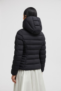 Featuring a feminine silhouette, the Herbe short down jacket for women is a sleek style with timeless appeal. Emblematic of the Moncler Matt Black aesthetic, the Herbe short down jacket is equipped with down-filled boudin quilting that highlights the silhouette, providing optimal warmth without ever feeling heavy. A hood with shiny logo lettering adds another hint of brand DNA to the puffer jacket. DETAILS - Crafted from stretch nylon - Stretch nylon lining - Down-filled - Hood - Interior branded band - Zipper closure - Zipped pockets - Silicone Matt Black logo SIZE AND FIT - The model is wearing a size 0 and is 178 cm tall - The model measures: bust 80 cm, waist 63 cm, hips 90 cm - Slim fit COMPOSITION EXTERIOR: 85% Polyamide / Nylon, 15% Elastane / Spandex; LINING: 100% Polyamide / Nylon; HOOD LINING: 85% Polyamide / Nylon, 15% Elastane / Spandex; PADDING: 90% Down, 10% Feather Product code J20931A0007253132U99 Made in Romania