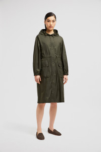 A practical design for everyday protection, the Heingos hooded rain coat for women is crafted from water-repellent nylon. Ideal for milder weather, the Hiengos parka is crafted from rainwear. This nylon fabric is notable for its light weight and excellent water-repellent properties. Cut in a relaxed fit, a cinched waist imbues the design with a feminine feel. DETAILS - Crafted from rainwear - Adjustable hood - Zipper and snap button closure - Patch pockets with snap button closure - Elastic waistband SIZE AND FIT - The model is wearing a size 0 and is 178 cm tall - The model measures: bust 76 cm, waist 62 cm, hips 91 cm - Loose fit - Adjustable, elasticized waistline COMPOSITION EXTERIOR: 100% Polyamide / Nylon; HOOD LINING: 100% Polyamide / Nylon Product code K10931C0002053A5E832 Made in Romania