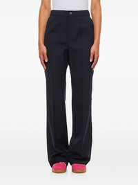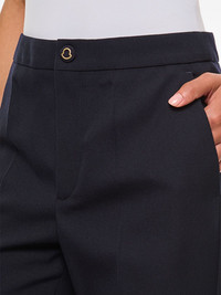pressed-crease trousers Highlights - Navy blue - Concealed front fastening - Two side slit pockets Imported Composition Polyester 55%, Virgin Wool 45%