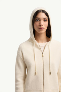 A sophisticated expression of leisurewear, this hooded sweatshirt for women is knit from a wool and cashmere blend. Elevating a casual essential, this sweatshirt is made from a plush blend of wool and cotton. Adding warmth and protection, a hood completes the design. DETAILS - Crafted from a cashmere blend - Interlock stitch - Gauge 12 - Hood - Zipper closure - Knit logo patch SIZE AND FIT - The model is wearing a size XS and is 177 cm tall COMPOSITION BASE FABRIC: 70% Virgin wool, 30% Cashmere Product code L10939B00021M1127034 Made in Bulgaria