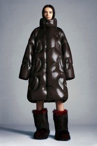 Characterized by sculptural volumes, the Iaphia long down jacket is emblematic of the Moncler + Dingyun Zhang collection. Characterized by bold, sculptural quilting, the Iaphia long down jacket is part of the Moncler + Dingyun Zhang collection. The puffer coat is emblematic of the designer's fascination with how the environment can influence the garment, and the inflatable-inspired piece represents capturing the oxygen for humans to survive in an extreme underwater environment. - Crafted from ultra-light crinkled nylon - Down-filled - Lightweight matt nylon lining - Zipper and hidden snap button closure - Zipped pockets - Mesh pocket - Patch pocket - Ribbed cuffs with wrist gaiters - Adjustable hem with drawstring fastening - Bonded oval detailing - Tonal Moncler logo SIZE AND FIT - The model is wearing a size 1 and is 180 cm tall COMPOSITION AND CARE LINING: 100% Polyamide / Nylon; PADDING: 90% Down, 10% Feather; DETAILS PADDING: 100% Polyester; 1 MATERIAL: 100% Cotton; BASE FABRIC: 100% Polyamide / Nylon Wash max 30°C - Mild process; Do not bleach; Do not tumble dry; Ironing maximum temperature 110°C - without steam; Do not dry clean; Professional wet cleaning - mild process; Flat dry in the shade; Wash separately; Do not iron decorations; do not soak; It is advisable to wash and iron the garment on reverse. Product code H109M1C00001M1865290 Made in Romania