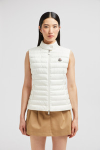 Designed to retain heat without feeling heavy, the Igens down vest for women features a tailored shape. Ready for milder weather, the Igens down vest is made from recycled longue saison. This nylon fabric is notable for its ability to provide warmth while remaining lightweight. Featured in a slim fit, the puffer vest creates a feminine silhouette with a cinched waist. DETAILS - Crafted from recycled longue saison - Recycled longue saison lining - Down-filled - Collar with snap button closure - Zipper closure - Zipped pockets SIZE AND FIT - The model is wearing a size 0 and is 180 cm tall - The model measures: bust 82 cm, waist 58 cm, hips 89 cm - Slim fit COMPOSITION EXTERIOR: 100% Polyamide / Nylon; LINING: 100% Polyamide / Nylon; PADDING: 90% Down, 10% Feather; DETAILS PADDING: 100% Polyester Product code K10931A00067597YF034 Made in Romania