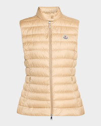 Crafted from signature longue saison, the "Igens" vest by Moncler is insulated with premium down and provides ample warmth with a lightweight look and feel. Features signature embroidered logo patch on the chest Stand collar with snap closure Sleeveless Invisible side zip pockets Slim fit Hem sits at the hip Twoway zipfront Nylon/polyamide Fill: Down/feather Hand wash or dry clean Imported