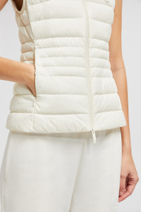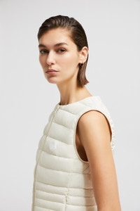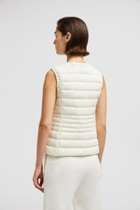 Made to be comfortable, the Irigny down vest for women retains warmth while remaining light. In line with the collection's clean lines, the Irigny down vest is crafted from lightweight nylon with a matte finish. The puffer vest emphasizes its understated feel with a subtle fit-and-flare shape. A versatile piece, the sleek warmer layers just as easily over knits in cooler weather as casual tops and t-shirts in milder temperatures. DETAILS - Crafted from recycled nylon - Nylon lining - Down-filled - Zipper closure - Zipped pockets - Silicone logo patch SIZE AND FIT - The model is wearing a size 0 and is 178 cm tall - The model measures: bust 75 cm, waist 58 cm, hips 88 cm - Slim fit - Fitted shoulders and bust - Slim waist COMPOSITION EXTERIOR: 100% Polyamide / Nylon; LINING: 100% Polyamide / Nylon; PADDING: 90% Down, 10% Feather Product code K10931A00080598AL050 Made in Moldova